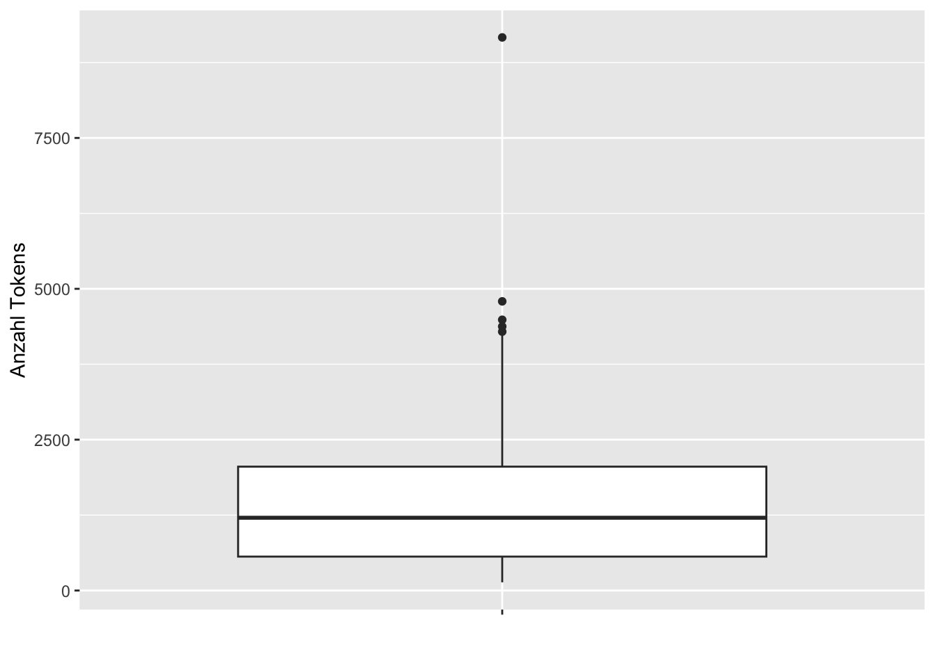 Zunächst ist es sinnvoll, sich einen Überblick über das Korpus zu verschaffen. Aus der letzten Woche kennt ihr bereits die summary()-Funktion. Wenn dieser Funktion als Argument ein Quanteda Corpus-Objekt übergeben wird, liefert sie einen Dataframe mit der Anzahl von Types und Tokens zu jedem Text. Der Text wird dabei automatisch mit den Defaultargumenten tokenisiert.