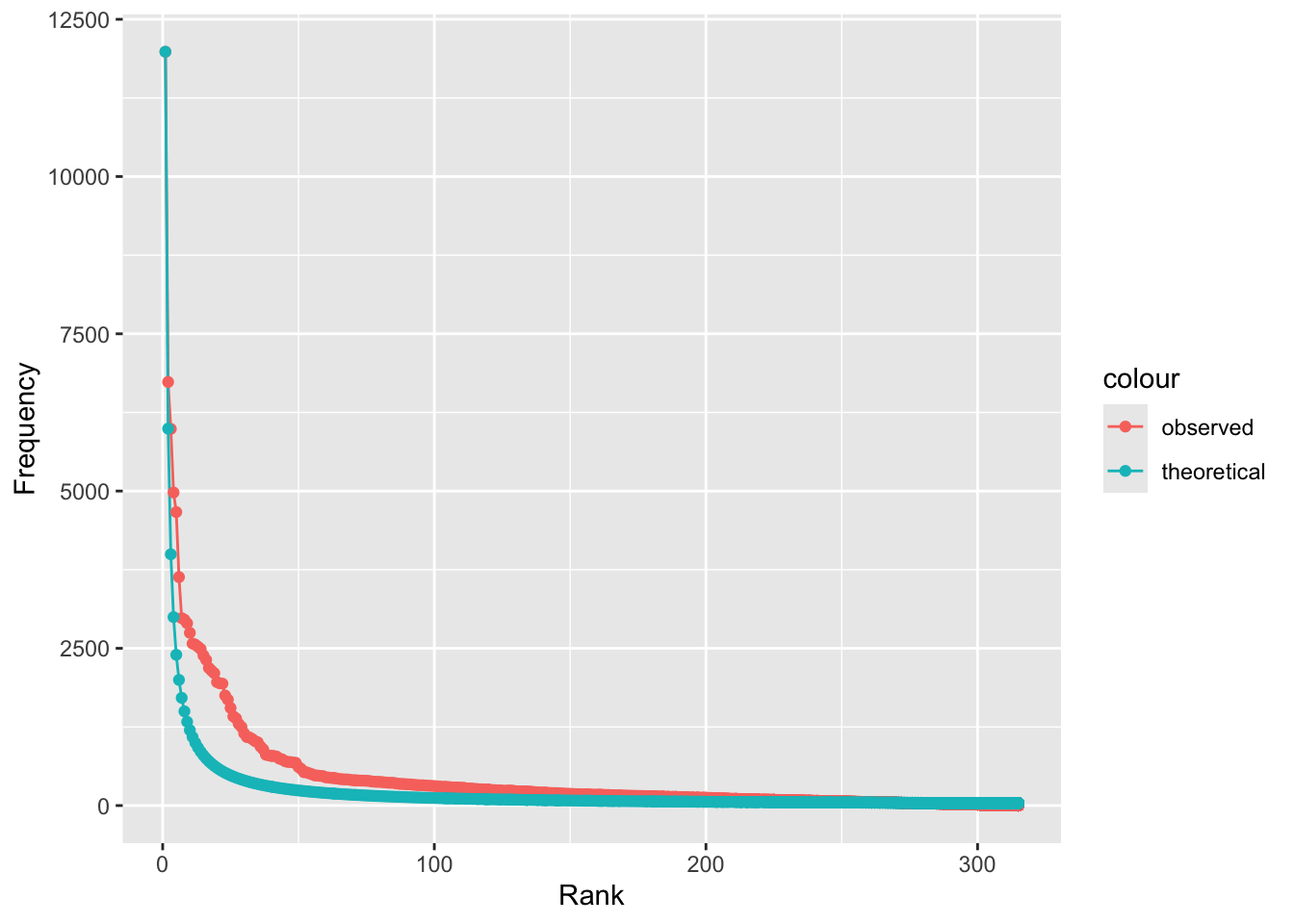 - Levshina, Natalia (2015). How to Do Linguistics with R. Ch. 3.3: Zipf’s Law and Word Frequency, pp. 62-68, https://doi.org/10.1075/z.195.