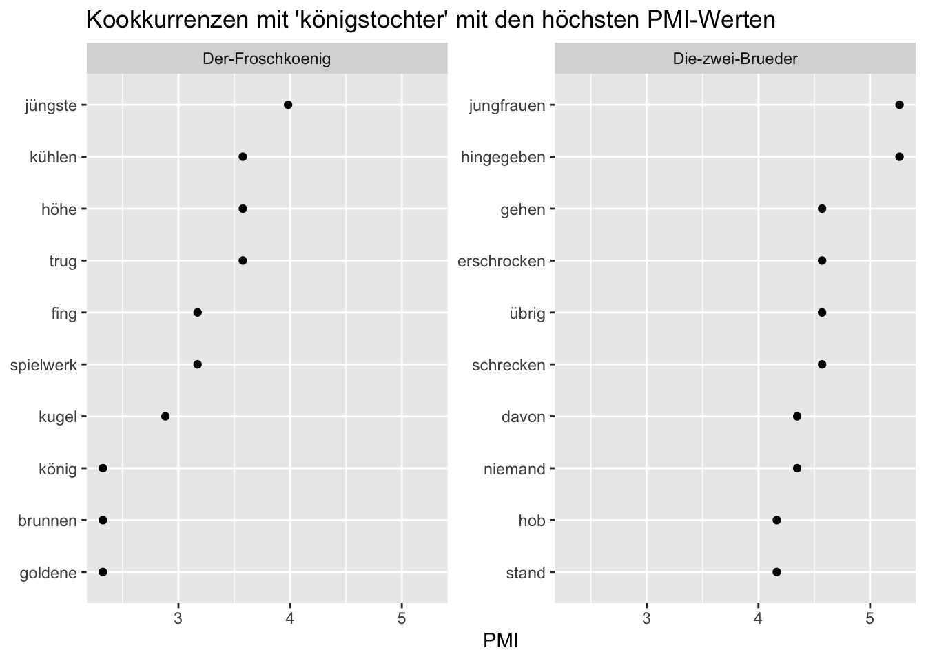 ggtitle("Kookkurrenzen mit 'königstochter' mit den höchsten PMI-Werten")